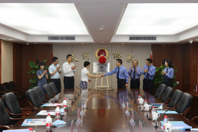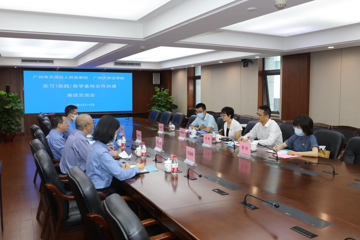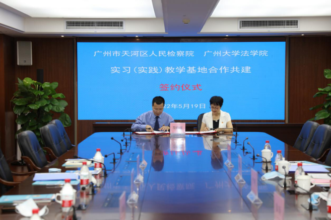 在与会人员的见证下,陈爱平书记代表我院与天河区人民检察院正式签订合作共建协议,并进行了实践基地揭牌。揭牌仪式结束后,双方还就当前高素质人才培养、学术调研和毕业生就业招聘等方面进行了深入的交流探讨。